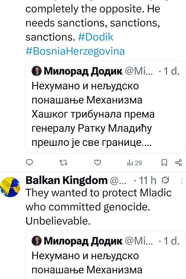 Dodik je, naime, ponovno komentirao zdravstveno stanje ratnog zločinca Ratko Mladić, nakon čega su uslijedile brojne reakcije, posebno iz susjedne Srbija.